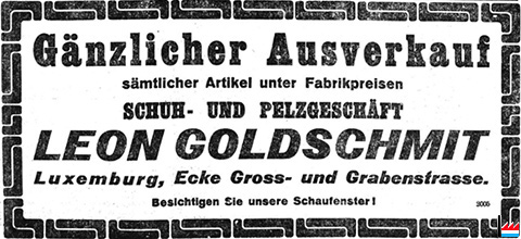 | <=1925 | Léon Goldschmit, Ecke Gross- und Grabenstrasse, Größtes Schuhgeschäft des Landes - 9 Schaufenster, tél: 3495 |