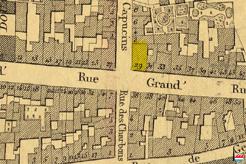 | 1862 | ![]() Eckhaus - Maison coin 29 Grand'Rue (Groussgaass) - rue des Capucins (Plan de la Ville et de la Forteresse de Luxembourg, dressé par J.B. Liesch, vérificateur-chef de bureau du Cadastre - 1862) |