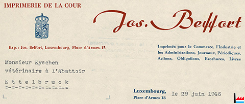 | <=1946 | ![]() Imprimerie Jos. Beffort, Luxembourg, 18 Place d'Armes - 1946 (Collection: industrie.lu) |