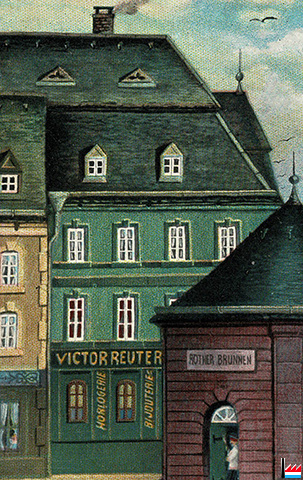 | <=4.1933 | ![]() Henri Rousselle - Roter Brunnen-Platz (rôde Pötz) im früheren Ladenlokale Meta Brahms (LW: 7.4.1933) |