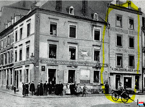 <=4.1907: Hôtel-Restaurant J. Kammes-Kremer, Luxemburg, 9 Marie-Theresienstraße <=1923: Hôtel des Viaducs, Luxembourg, Pierre Welter - Anna Beffort, Entrées: Boulevard du Viaduc et 9 rue Marie-Thérèse (= 29 rue Notre-Dame) |