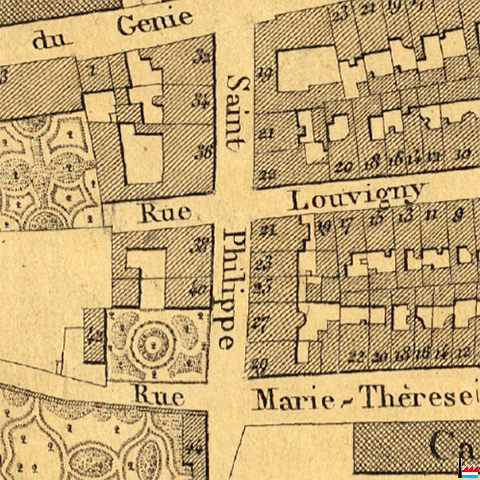 | 1862 | ![]() Luxembourg, rue Philippe (Plan de la Ville et de la Forteresse de Luxembourg, dressé par J.B. Liesch, vérificateur-chef de bureau du Cadastre - 1862) |