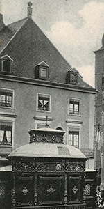 Ancienne auberge «Welle Mann» qui se trouvait à l’emplacement du bâtiment principal du Musée de l’Etat. Mentionnée déjà dans un texte de 1489, la maison «A l'Homme Sauvage» devenait en 1538 la propriété de la famille Wiltheim qui, sans doute, était obligée de la reconstruire. En 1838, Antoine Pescatore fit démolir cette maison, et à sa place fut construite la future demeure Collart-de-Scherff dans laquelle fut logé plus tard le Musée. Le nom de «Welle Mann» vient d’une enseigne représentant un Sauvage qui ornait la façade de cette ancienne auberge. Ces enseignes étaient destinées à signaler l’établissement au public souvent illettré. (LW: 1.3.1980) ) | |||