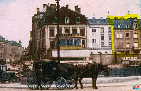 | coin droit | ![]() Hôtel Clesse, au coin rue Neyperg - avenue de la Gare, à la Gare centrale de Luxembourg <= 1927 (Carte postale: C. Schoren, photographe d'art, Luxembourg-gare; Collection: industrie.lu) |