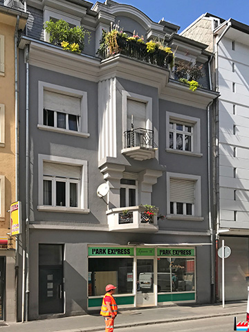 | 9.5.1901 | Versteigerung: Hôtel Schmitz, durch Adolphe Amberg, fils rue du Fort Neipperg 13 chambres, watercloset et eaux de la ville entre M. Korn (Hôtel Clesse) d'un côté et M. Hostert de l'autre, donnant par derrière sur le chemin de fer |