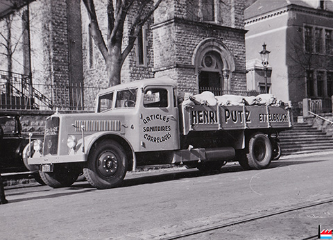 | um 1919? | ![]() LKW der M.A.N.-Lastwagenwerke - Henri PUTZ, Ettelbruck (Collection: Yves Kemp) Erster Lastwagen (mit Kipper) der Firma Henri PÜTZ, Ettelbrück Lieferant: Scheuer, Ettelbrück Es war der 1. Lastwagen der nach dem Kriege 1914-18 in Ettelbrück lief |