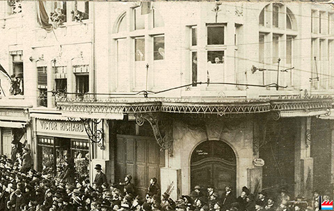 | <=1917 | ![]() 1917 Maison Moderne - Luxemburg, Ecke Gross- und Casinostrasse (Source: John Pickels - Kome’de’steck an 3 Akten vum René Leclère opgeféiert am gro’ssen Teater zu Letzebuerg am Joer 1917; Collection Charles-Louis Aschman, Luxembourg) |