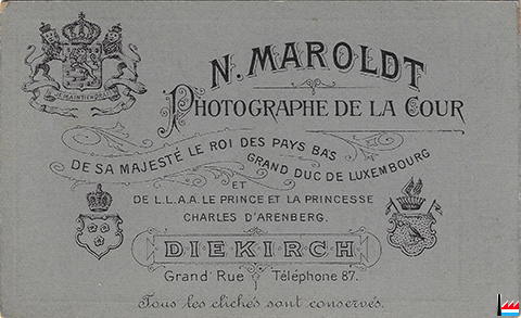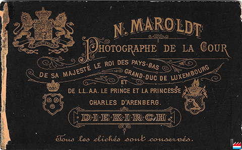 | 31.7.1883 | Nicolas Maroldt reçoit le titre de « Photographe de la Cour de Sa Majesté le Roi des Pays-Bas Grand-Duc de Luxembourg et de LL.AA. le Prince et la Princesse Charles d’Arenberg ». |