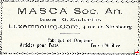 | 1931 | MASCA S.A., 4 rue de Strasbourg, Luxembourg-Gare Directeur: G. Zacharias Fabrique de drapeaux |