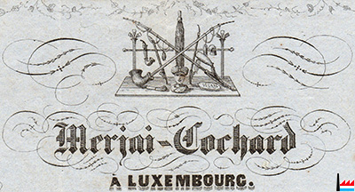 | 1855 | Fabrique de tuyaux de pipes en tous genres Merjai - Cochard, Luxembourg | ||