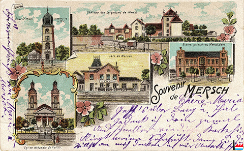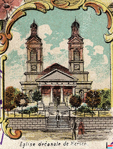 ![]() Eglise de Stenay - Le modèle de l'église paroissiale de Mersch - Vorbild der Merscher Pfarrkirche (Carte Postale: Collection: industrie.lu) |