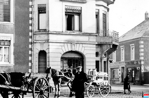 | 1947/1948 | Dén de lèschte summer durch feier zerste’erte geschäftslocal vun der épicerie Albert Cloos-Engeldinger ass nés eso weit an d’rei gesat. An erwardong vun der définitiver fèrdegstellong ass d’geschäft „Cogenal’“ provisoresch an dém betr. immeubel installe’ert, wärend den hèr Alb. Cloos de’ virdrun vun der Fa. Cogénal am haus Israël gelo’nte reim bezun huet. (D'Unio'n: 16.1.1948) |