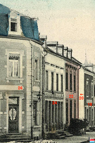 | 1918/19 | ![]() Mersch, rue de la Gare: Café Kuppens-Feith, 18 rue de la Gare - Maison d'habitation Urbes, 16 rue de la Gare - Café Urbes, 14 rue de la Gare (Archives: Nico Lucas) |