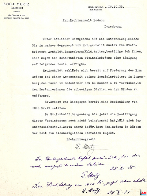 Courrier du 19.10.1935 adressé à M. Victor Bodson, avocat à Luxembourg |