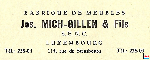 | <=1956 | Fabrique de meubles Jos. Mich - Gillen & Fils S.e.n.c. 114 rue de Strasbourg , Luxembourg |