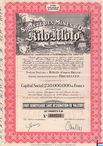 Société des Mines d'Or de Kilo-Moto - Part bénéficiaire sans désignation de valeur au porteur (Collection: industrie.lu)