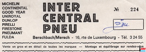 | ? - 1988 - ? | ![]() Inter Central Pneu, Berschbach / Mersch - 1988 (Collection: industrie.lu) 16 route de Luxembourg |