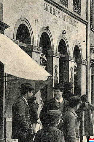 ![]() Mohren Apotheke, Place du Puits rouge et (53 /18) Grand'rue, Luxembourg - vers 1899 (Carte postale: N° 1093 Charles Bernhoeft, Luxembourg; Serie Luxembourg N° 21; Collection: industrie.lu) C. Schroeder |