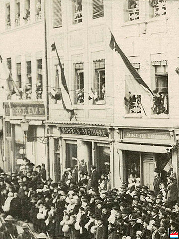 | 21.11.1918 | ![]() Entrée des Troupes américaines à Luxembourg (Carte postale: Collection: industrie.lu) Rosenstiel-Neumann - Mohren-Apotheke 16 Großgasse - Heintz van Landewyck (Großgasse N° 5x/14) - Victor Richard (Großgasse N° 57/12) - Maison Moderne |