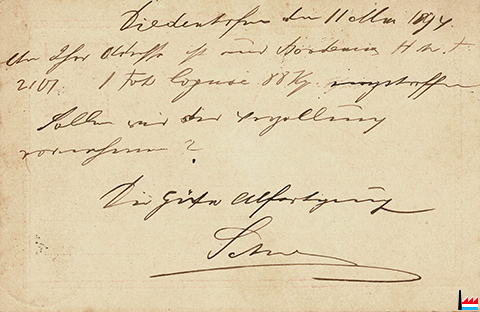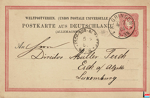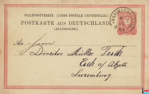 ![]() Diedenhofen 11.5.1894 an ![]() Müller-Tesch, Ingenieur der Hochöfen, Esch/Alzette - 11.5.1894 (Collection: industrie.lu) à Messancy |