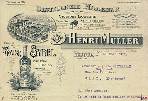 | <=3.1911 | ![]() Distillerie Moderne Henri Muller, Vesoul - facture du 20.3.1911 (Collection: industrie.lu) succ.: Henri Dautel, Vesoul |