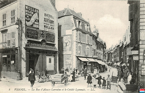 | <=1908 | ![]() Muller, distillateur - spécialiste & Grandes Liqueurs - Fraise Sybel, Vesoul - aux Allées Bières de Xertigny - Entrepôt direct Muller aux Allées - Pubs sur le Crédit Lyonnais, Vesoul, rue d'Alsace-Lorraine - <=1908 (Collection: industrie.lu) ![]() Crédit Lyonnais, Vesoul, rue d'Alsace-Lorraine - <=1908 (Collection: industrie.lu) |