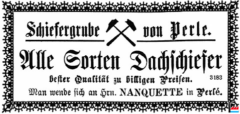 | 1892 | Schiefergrube von Perle - Nanquette in Perlé (LW: 4.11.1892) |