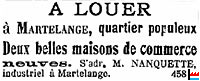 | 1891, 1895 | Ardoisières Laura, Haut-Martelange d'Etienne Nanquette - Bour (père de Mathias et de Nicolas Nanquette) |