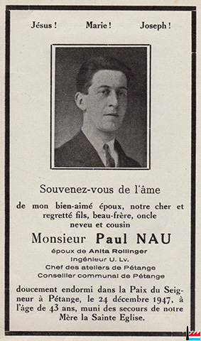 Carte de décès de Paul Nau (collection: industrie.lu)