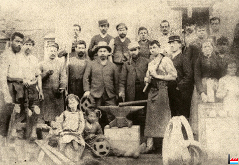 ![]() Le personnel de la clouterie de Bissen - vers 1903 (Source: Bissen seit eh und je - Band 2 - Seite 329) |