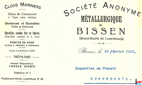 | 1923 | Société Métallurgique de Bissen (Inscription au registre aux firmes N° 167 - Du 27 janvier 1923) |