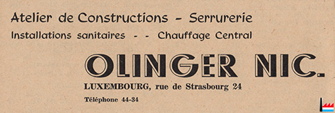 | <=1948/49 | Atelier de constructions - Serrurerie Olinger Nicolas - 1948/49 24, rue de Strasbourg Luxembourg-Gare |