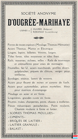 | 1930 | Fusion Ougrée-Marihaye avec Alliance-Monceau | ||