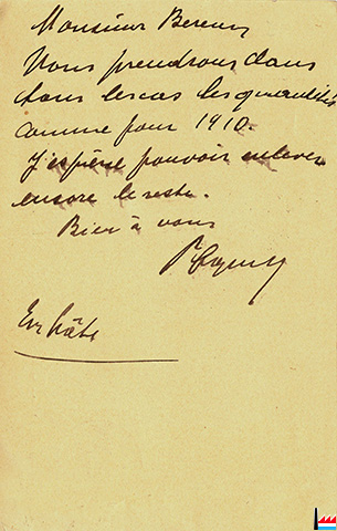 Nous prendrons dans tous les cas les quantités comme pour 1910. J'espère pouvoir enlever encore le reste - En hâte