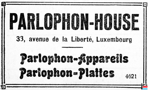 | <=1926, 1927 | PARLOPHON-HOUSE, avenue de la Liberté 33, Luxembourg (LIL: 29.12.1926) Parlophon-Appareils Parlophon-Plattes |