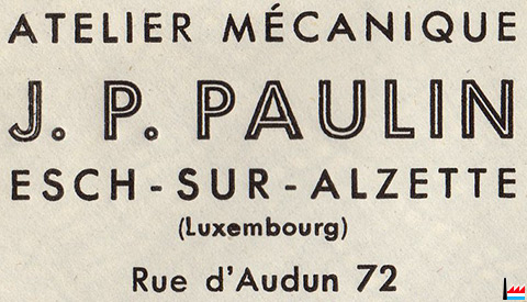 | 1955 | Atelier mécanique Paulin J.P. 72 rue d'Audun, Esch/Alzette |