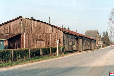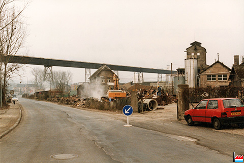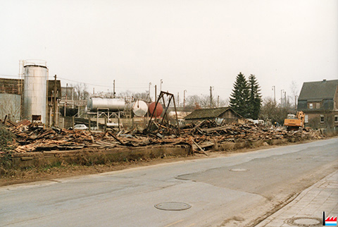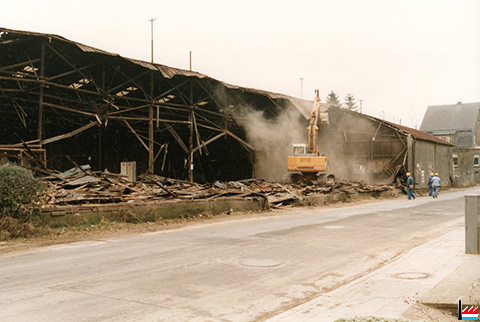 Abriss der ehemaligen Parkettfabrikationshalle von Hoffmann-Schaedgen bei Pedinotti als Garage für Lastwagen und Baumaschienen Foto 7-12-1995 |