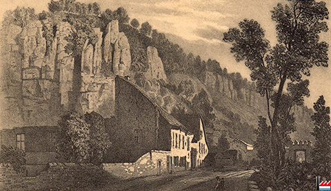 Ruines du château de Mansfeld - 1835 (Dess. d'après nat. par J.B. Fresez- Collection Jean Berward, Paris - Luxembourg)