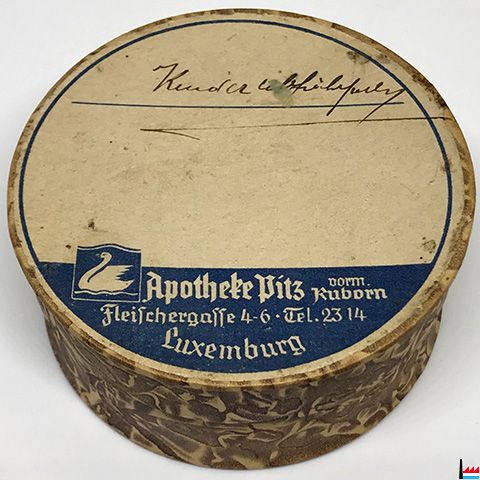 | 1933 | ![]() 1933 - Apotheke Lucien Pitz (vorm. Kuborn-Lassner) - Schwanenapotheke - Pharmacie du cygne (In: Luxemburger Marienkalender 1933 57. Jahrgang) |