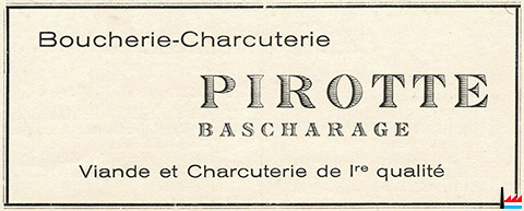 | 2.1.1959 | Ed. Pirrotte - Kaiser, Bascharage übernimmt die Metzergei von Fr. Guirsch - Cruchten, Bascharage, 15 rue de la Poste (LW: 31.12.1958) | ||