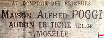 | ? - 1957 - ? | Au Comptoir des Primeurs Maison Alfred Poggi Audun-le-Tiche, Moselle Tél: 64 ![]() ![]() Au Comptoir des Primeurs - 1957 (Collection: industrie.lu) Maison Alfred Poggi Audun-le-Tiche, Moselle Tél: 64 A. Winckel, gérant |