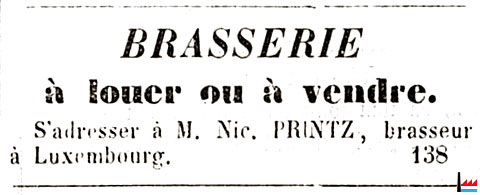S'adresser à M. Nic. Printz, brasseur à Luxembourg - 1.1869