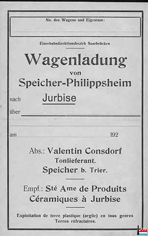 | <=6.1913 | Livraison d'argile de Valentin Consdorf, Speicher à la S.A. de Produits Céramiques de Jurbise par train (wagon de 10 tonnes) | ||