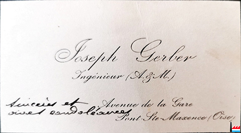 | <=1913 | ![]() Joseph Gerber, ingénieur (A.&M.), avenue de la Gare, Pont-Ste-Maxence (Oise) (Collection: Wilhelm Schommer) |