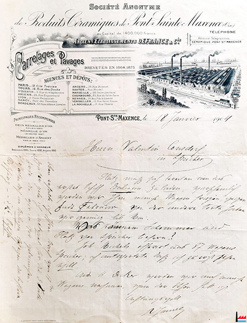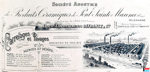 Reprise des Etablissements Defrance & Cie, Pont-Sainte-Maxence par et fondation de la Société Anonyme de Produits Céramiques de Pont-Sainte-Maxence carrelages et pavages céramiques |