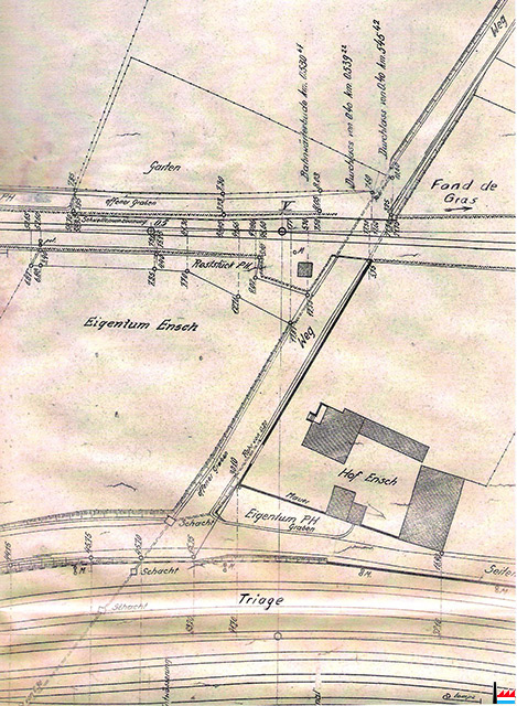 Plang (ouni Datum) vum Haff - Hof Esch, Petingen, ënnen den CFL-Triage an uewen Streck fier op Lamadelaine (Collection: Marcel Schlim)