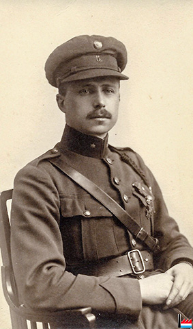 Maurice Desclée, né le 22.5.1886 à Leuze, volontaire de guerre 1914-1918, lieutenant de réserve d'infanterie, beau-fils d'Alexandre Renkin et d'Élise Aschman. - Collection famille Aschman-Bodson, Luxembourg.