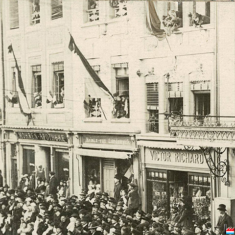 | 21.11.1918 | ![]() ![]() Entrée des Troupes américaines à Luxembourg (Carte postale: Collection: industrie.lu) Rosenstiel-Neumann - Mohren-Apotheke 16 Großgasse - Heintz van Landewyck (Großgasse N° 5x/14) - Victor Richard (Großgasse N° 57/12) - Maison Moderne |