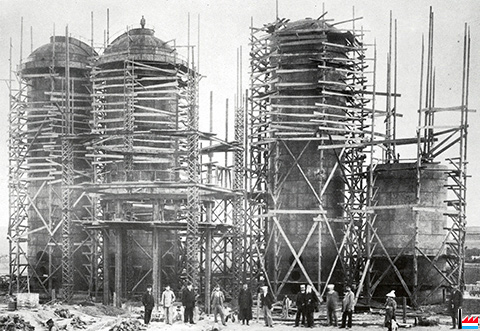 ![]() Montage des hauts fourneaux et cowpers de Toula, sous la direction de Ries Joseph. Visite du comte Tolstoï (Source: 450 ans d'Espérance - La S.A. Métallurgique d'Espérance-Longdoz de 1519 à 1969 - Willem Léon - 1990, p. 68) |