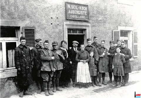 Café du Commerce, N7 | <=1919: Café Seil-Koch N., aubergiste, distillerie | <=1938: neben: Spezialfischhandlung Marbes-Ludwig Ph. | Seil-Koch Vve, café, distillerie, tél: 32021 | <=1963: Café Seil-Koch, gegenüber Waschbrunnen 7.1969: Mersch. Große Versteigerung. Im Hotel Brandenburger (Inh. Pierre Lorang-Seil) ließen die Erben Nic. Seil-Koch aus Rollingen-Mersch, am 28. Juli teilungshalber versteigern und einem Miterben zuschlagen: Café mit Schankwirtschaftsprivileg, Kegelbahn, Terrasse, Scheune, Stallungen und Wiesen, gelegen zu Rollingen-Mersch, an der Hauptstraße Ort, genannt „im Aeterchen“, groß 15,62 Ar, für 730 000 Franken. Im Erdgeschoß liegen: Café-Lokal, zwei Stuben und Küche; auf dem Stockwerk: fünf Zimmer und eingerichtetes Badezimmer; ferner: Keller und Speicher. Los 2: ... (LW: 30.7.1969) |